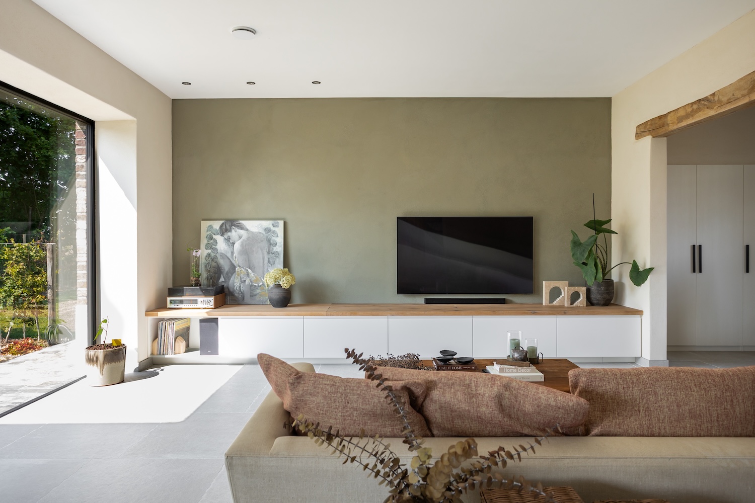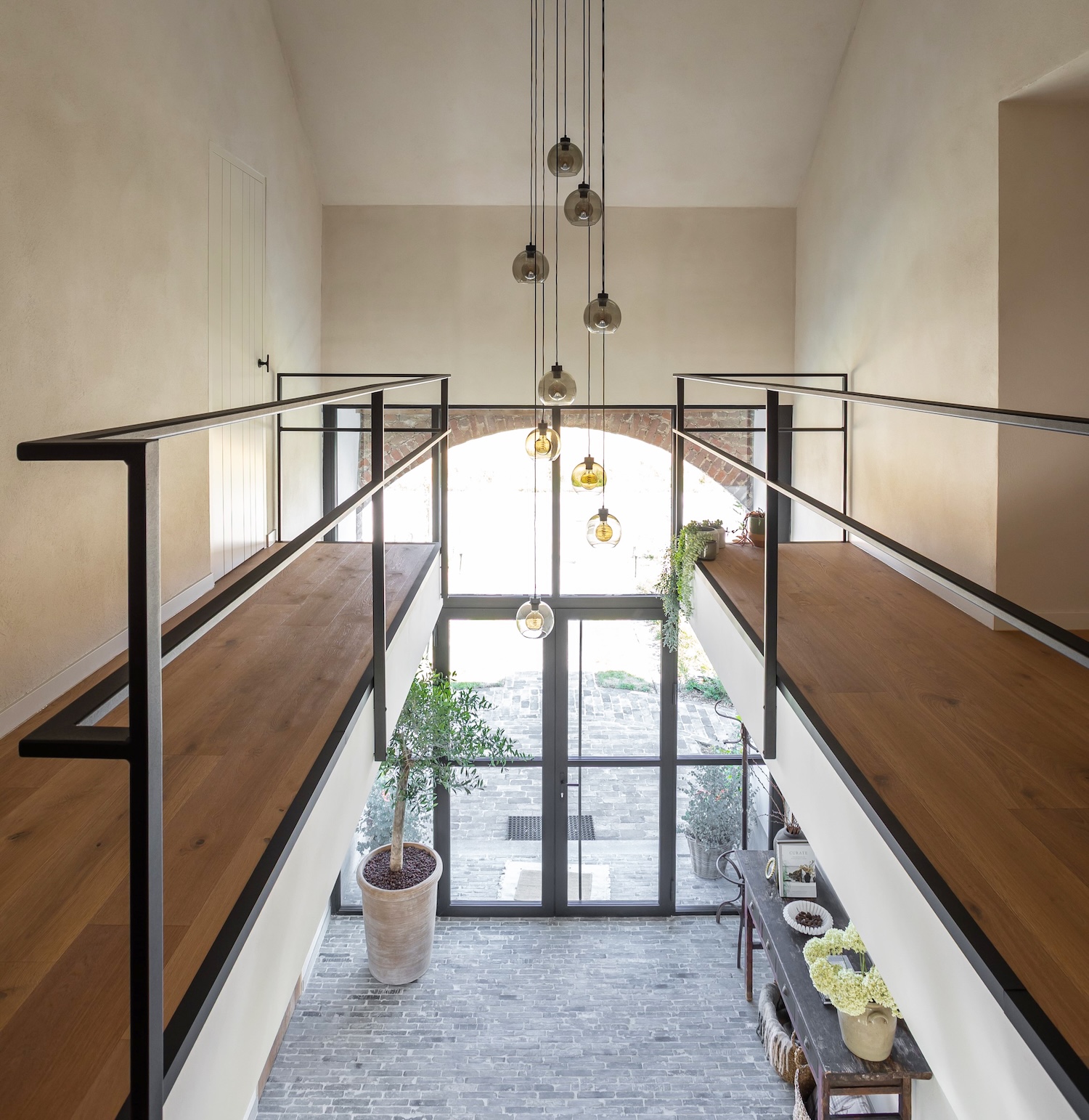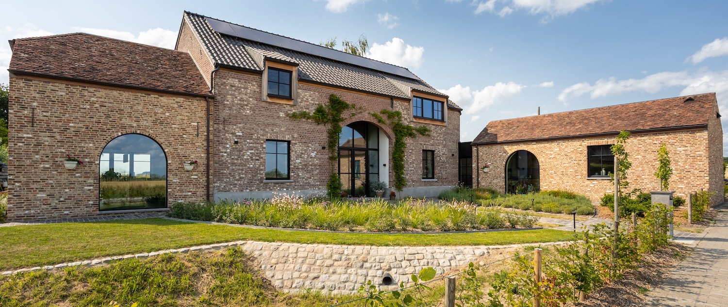 Voor dit project werd een verouderde hoeve volledig getransformeerd tot een hedendaagse, energiezuinige gezinswoning. De combinatie van traditionele materialen en moderne architectuur zorgt voor een unieke balans tussen oud en nieuw. De centrale inkom, met zijn imposante glaspartij, vormt een warm en uitnodigend accent. Binnen werd het gebouw volledig heringericht naar hedendaagse woonnormen, met oog voor comfort, ruimtegevoel en duurzaamheid. Het resultaat is een woning die de charme van het verleden combineert met het comfort en de duurzaamheid van vandaag – een geslaagde symbiose tussen karakter, licht en moderne leefkwaliteit.